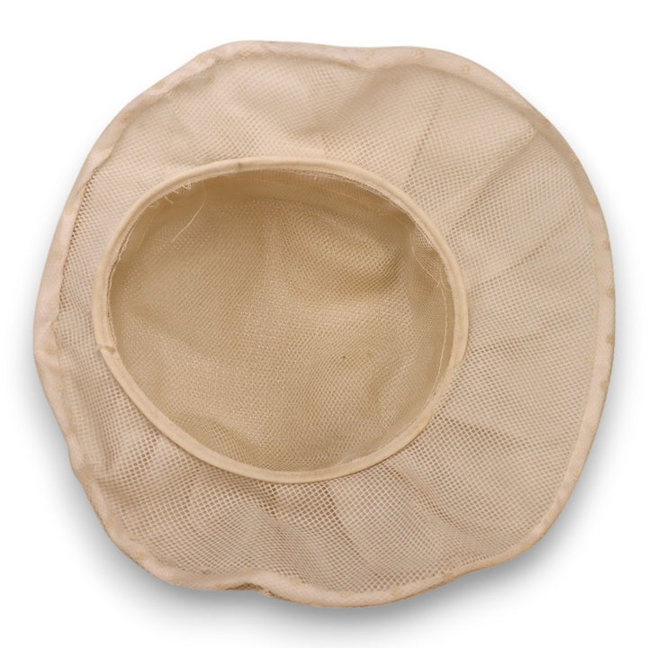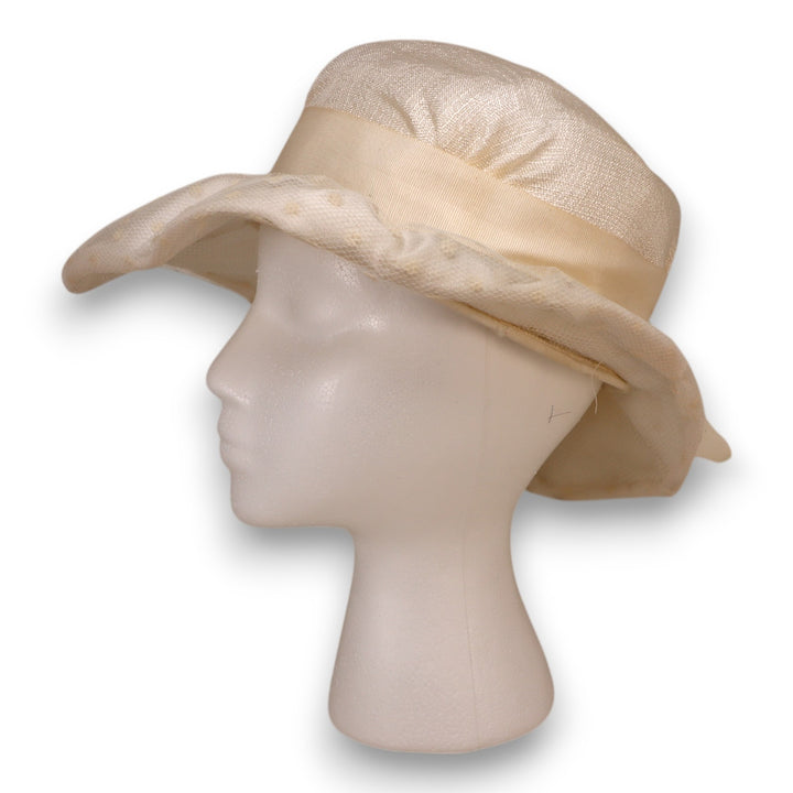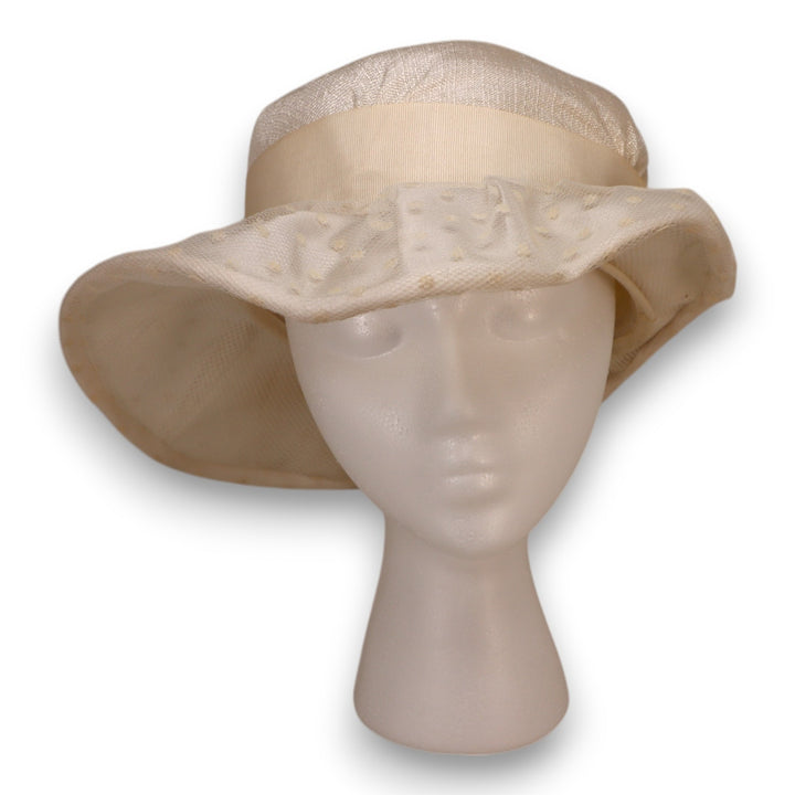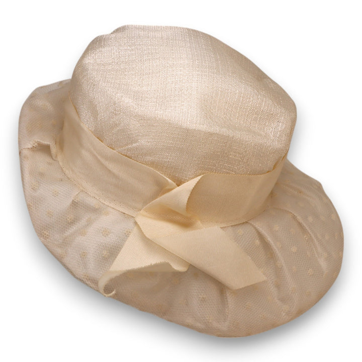 Vintage Cream Polka Dot Lace Wide Brim Hat w/ Bow Ladies Summer Size SM 54 CM