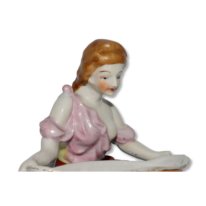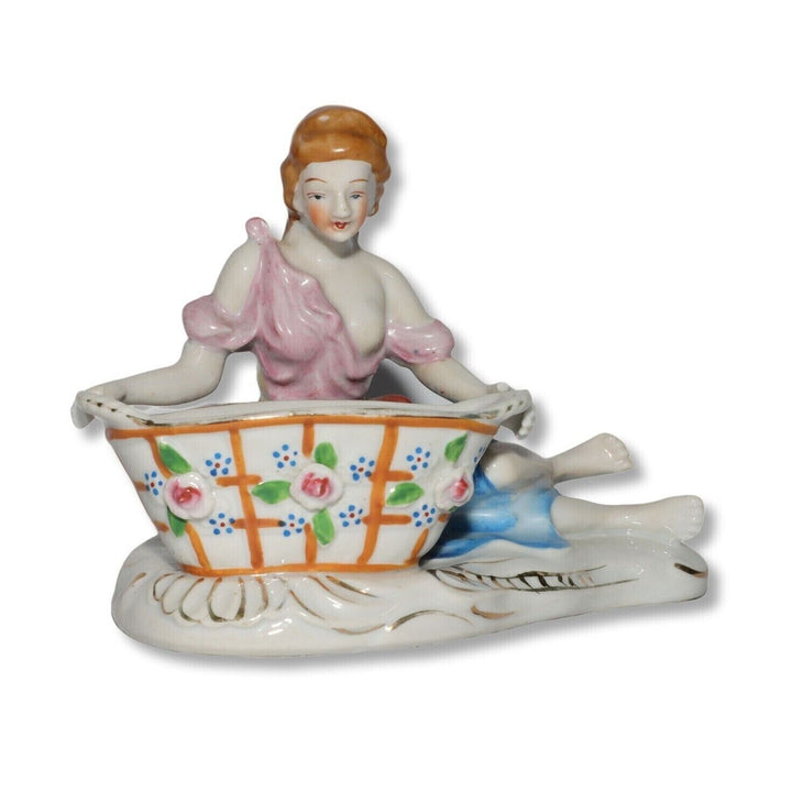 Semi-naked Woman with Basket HP Porcelain Figurines 5"x6" Occupied Japan