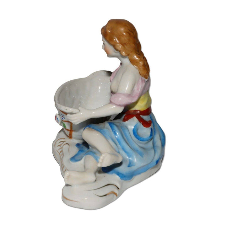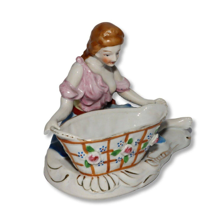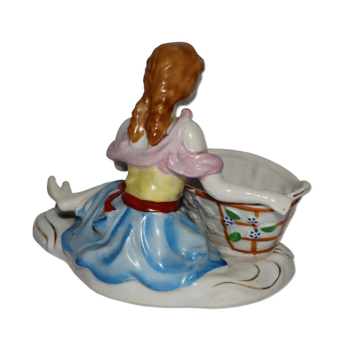 Washwoman Maiden Mincemeat Basket HP Porcelain Figurines 5"x6" Occupied Japan