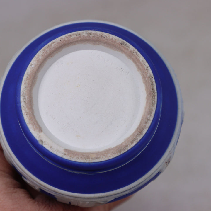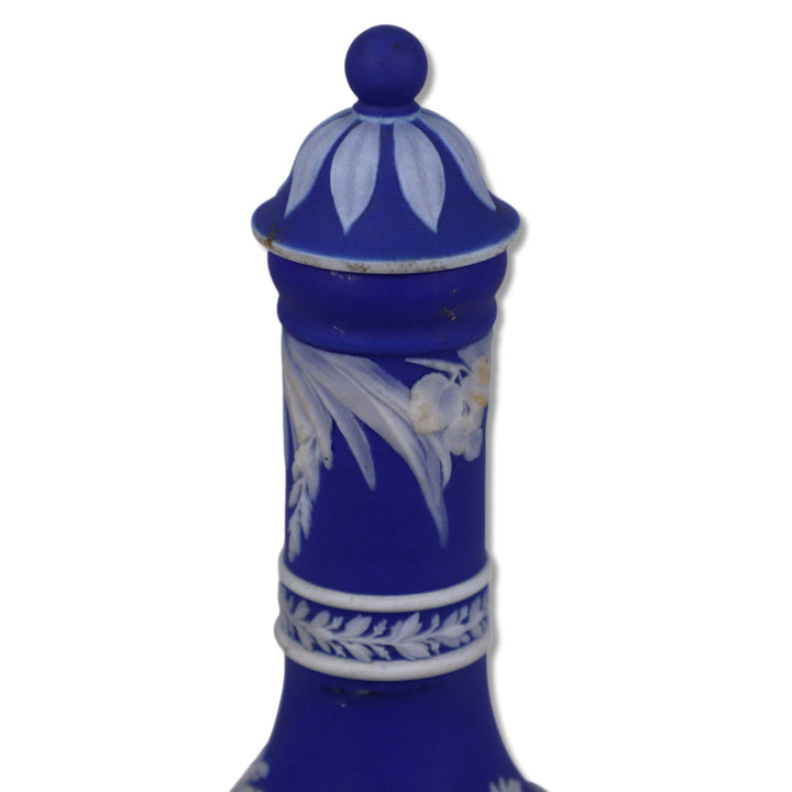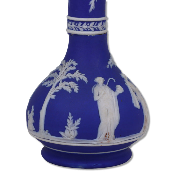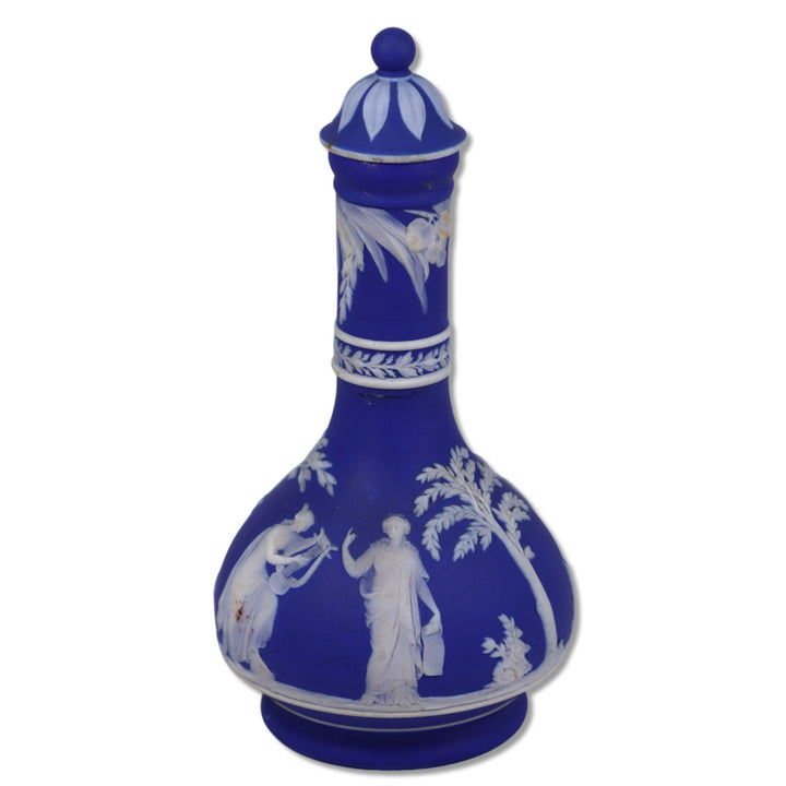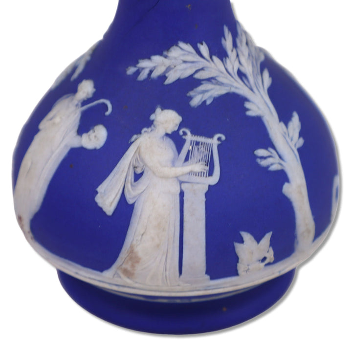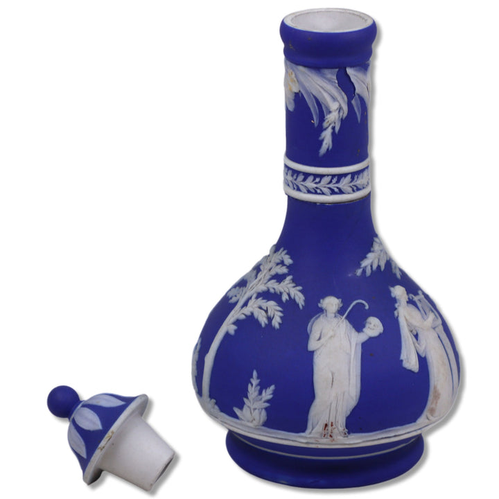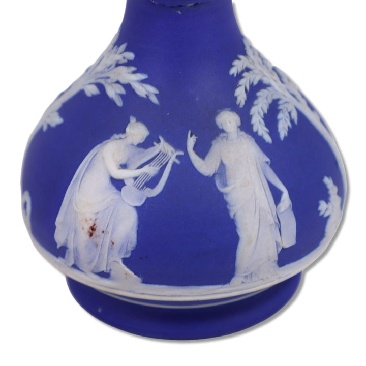 Wedgwood 1014 Muses Cream on Blue Jasperware 6" Barber Bottle 1890's