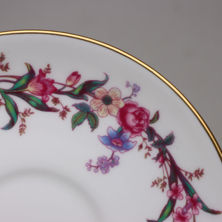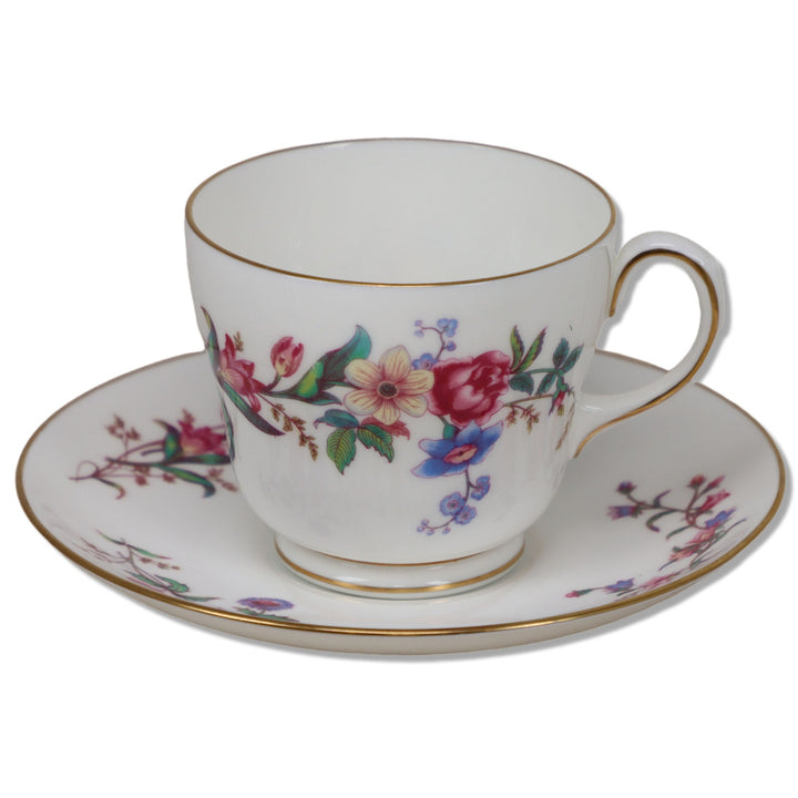 Wedgwood Devon Sprays W4076 Footed Tea Cup Saucer Set Enland Bone China 1950's