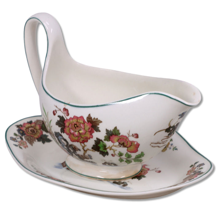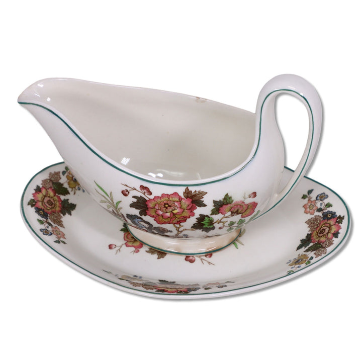 Wedgwood Eastern Flowers TDK 426 Gravy Boat Green Trim 1940's