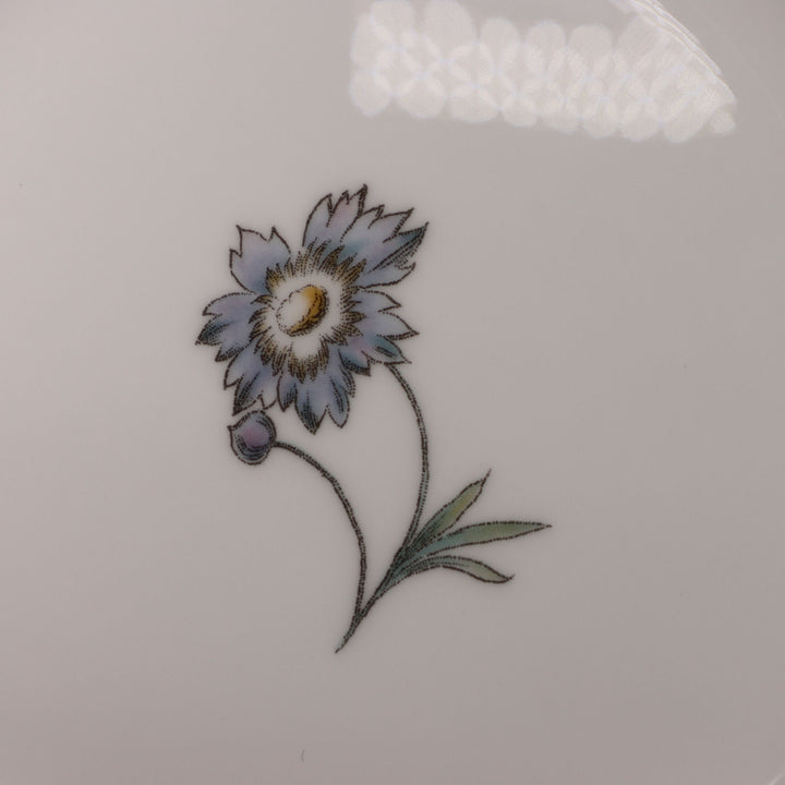 This elegant Wedgwood bread plate from the 1991 "Humming Birds" collection captures the refinement of English bone china with a vibrant marbled rim and central blue flower motif. The pattern is a distinctive fusion of artistic naturalism and bold decorative edgework, making this a collector’s favorite for display or daily use. Crafted in England and discontinued, this plate reflects the quality Wedgwood is known for and remains a desirable vintage find.