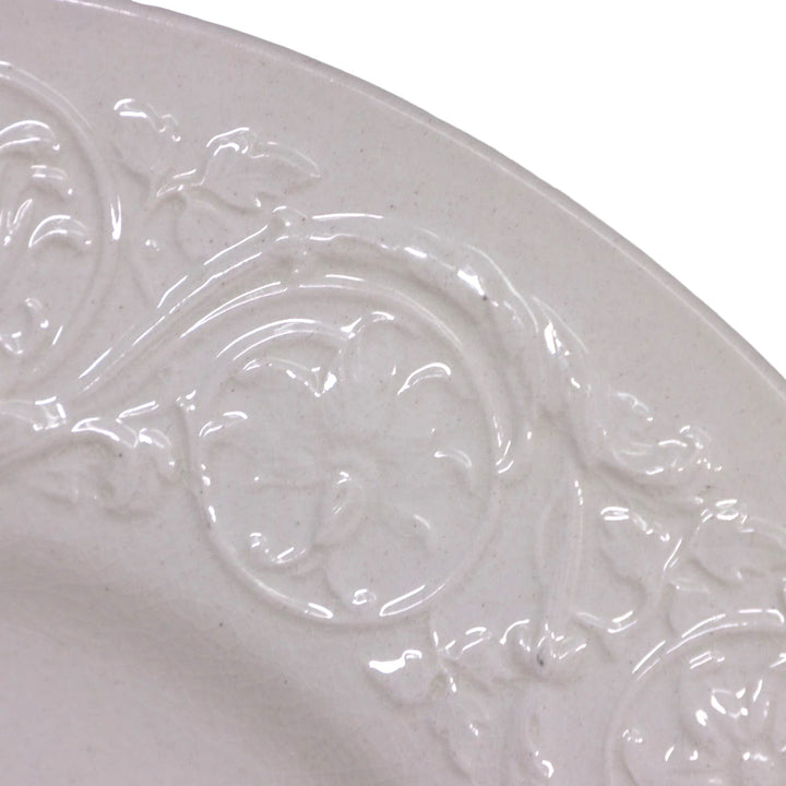 Cream, Embossed Flowers & Scrolls, No Trim, Patrician Shape, Floral Center