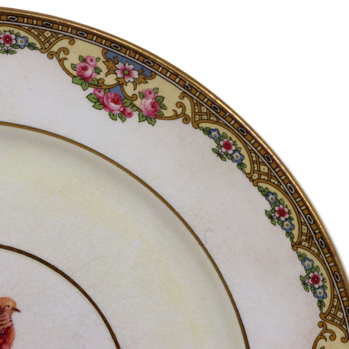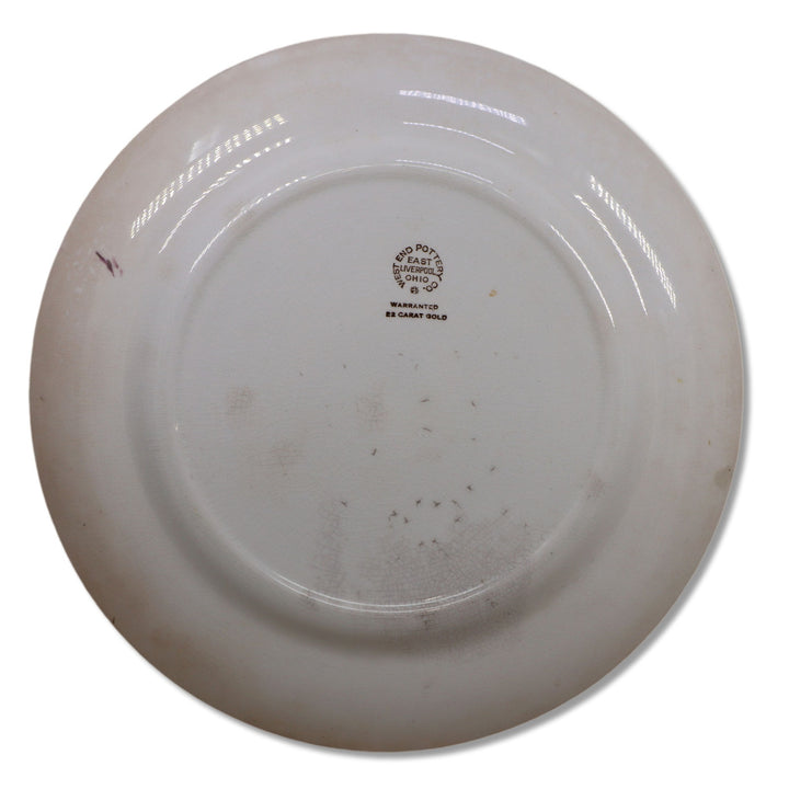 West End Pottery WSD3 Pheasant 10 1/2" Dinner Plate 22kt Gold Antique 1893 to 1938