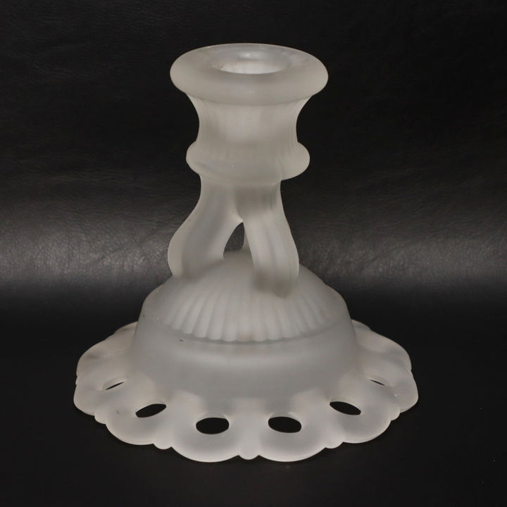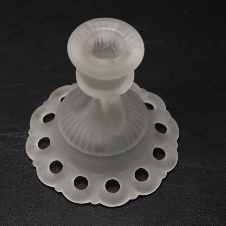 Westmoreland Doric Open Lace Clear Frosted Satin Glass Candle Holder Vintage