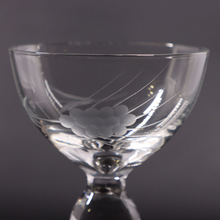 Wheat Etched Crystal Liqueur Cocktail Glass 3 5/8" Ball Stemmed Vintage MCM