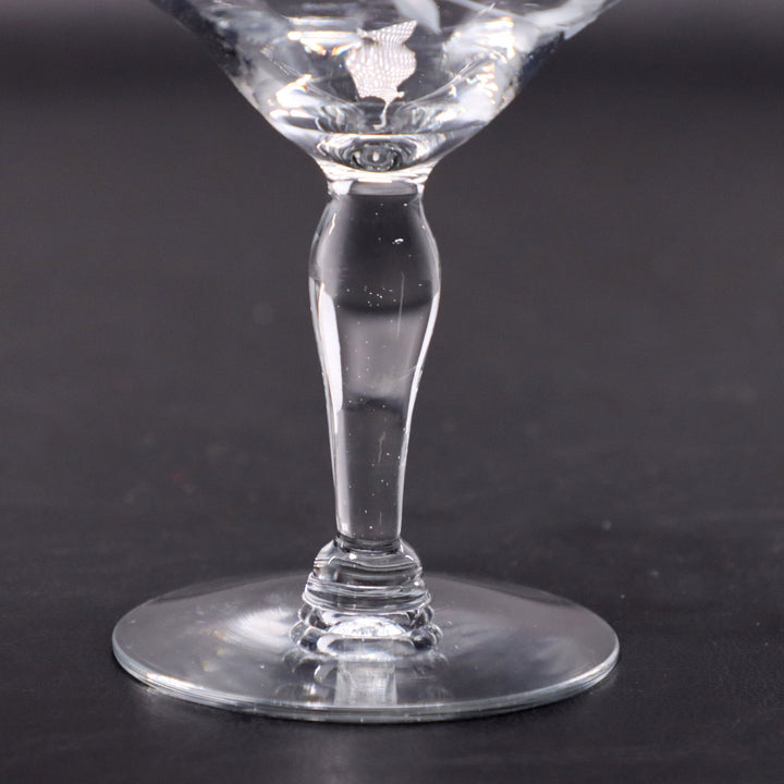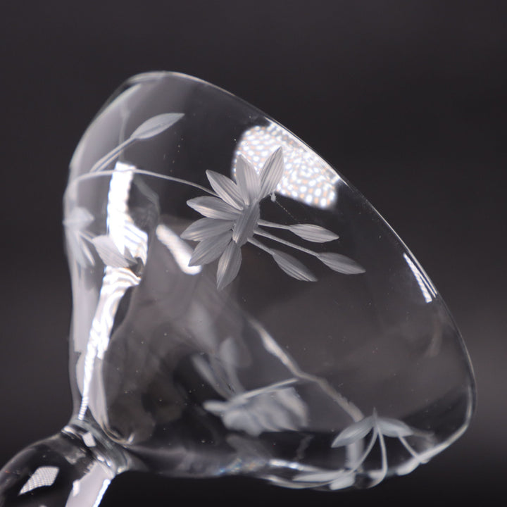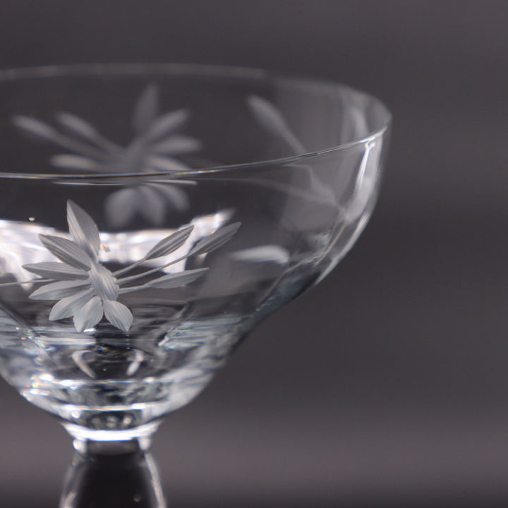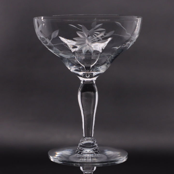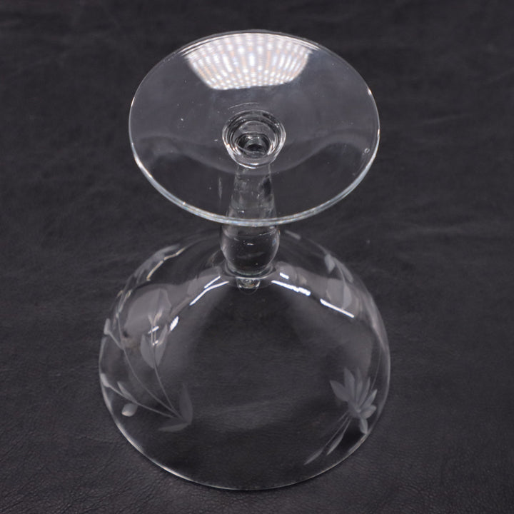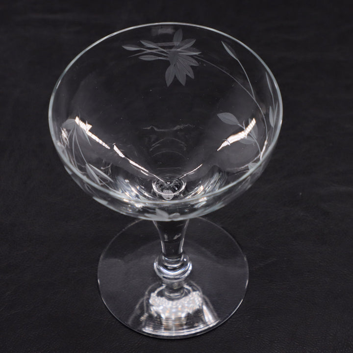 Wheel Cut Etched Wheat Crystal Champagne Coupe Low Sherbet Glass 4 1/2" Vintage