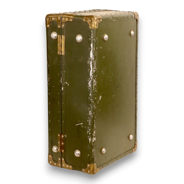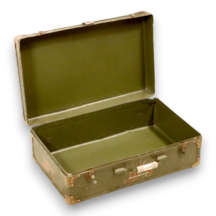 WWII USMC Officer Footlocker Trunk Olive Green Aluminum Suitcase 26" Vintage