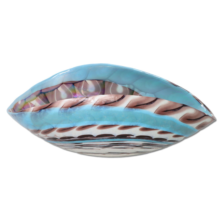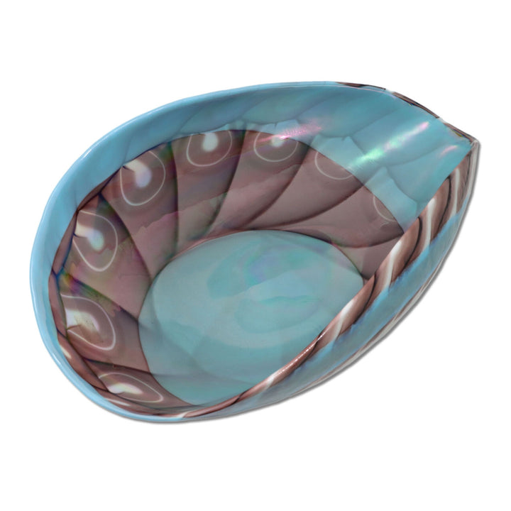 A large hand made art glass shell made in opalescent finish.