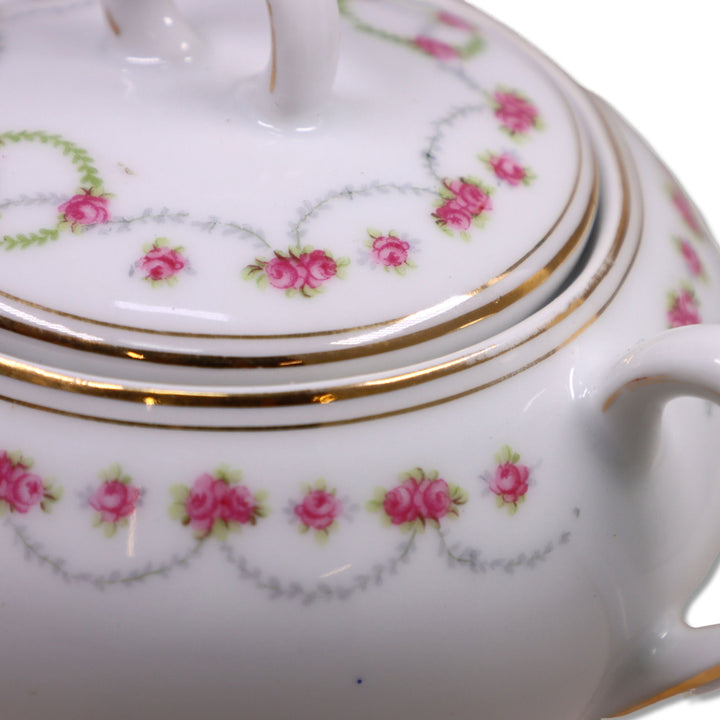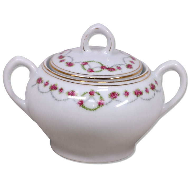 Z.S & Co Zeh. Scherzer Co Empire Lidded Sugar Bowl Bavaria Pink Roses & Swag 1900